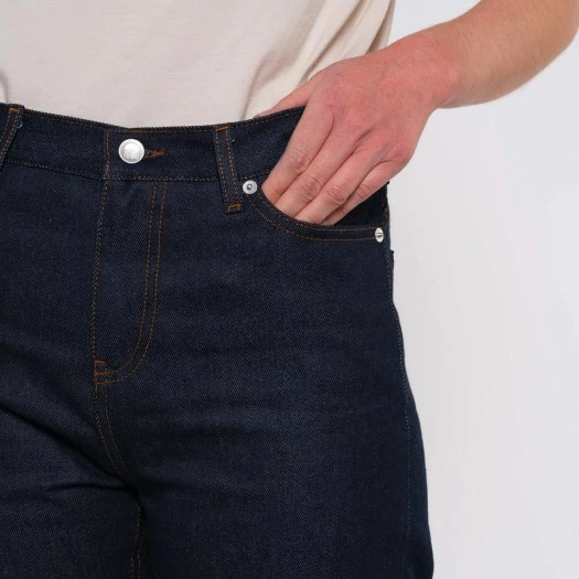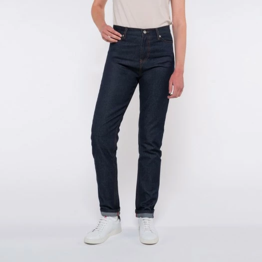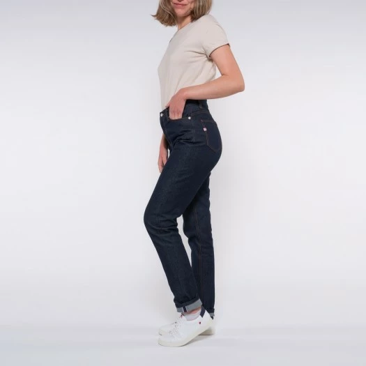 1083 JEANS AJUSTE 253 Taille Haute Coton Bio Superselvedge Indigo Brut
