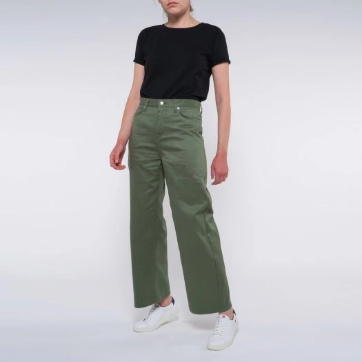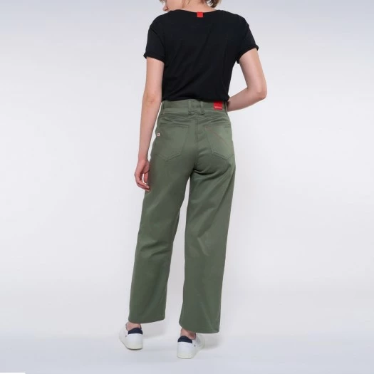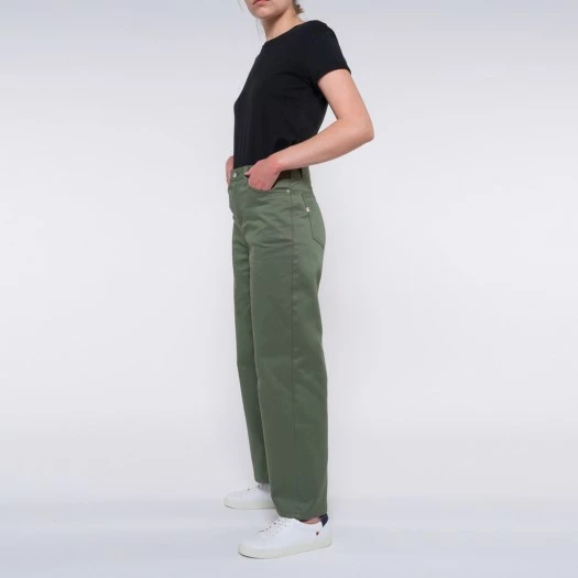 1083 JEANS AMPLE 7/8EME 256 Taille Haute Coton Bio Denimoriginal Kaki Femme