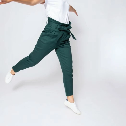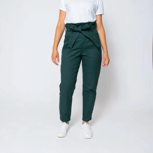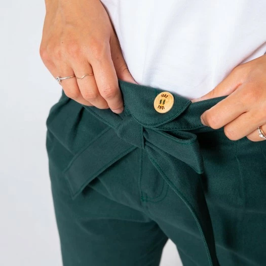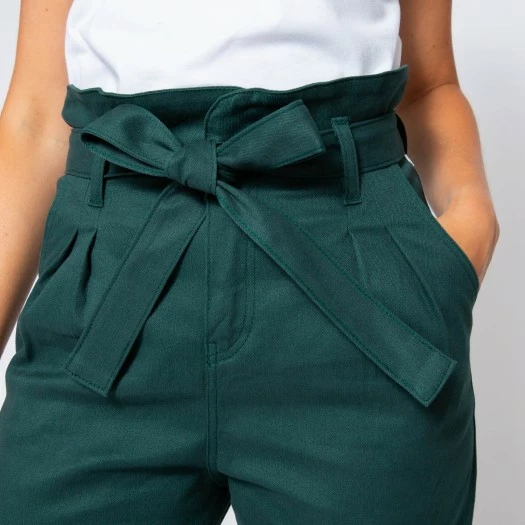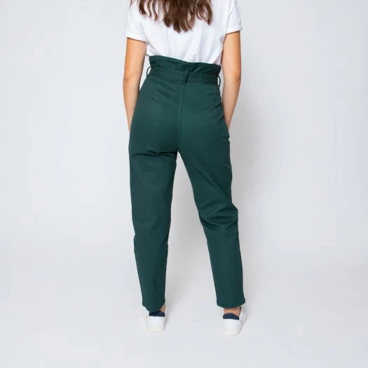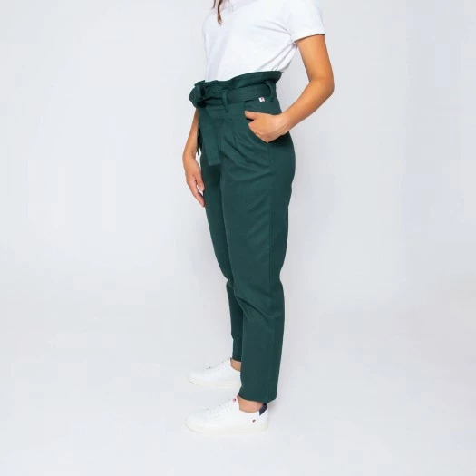 1083 JEANS NOUE CAROTTE 209 Taille Haute Coton Bio Uni Vert Emeraude