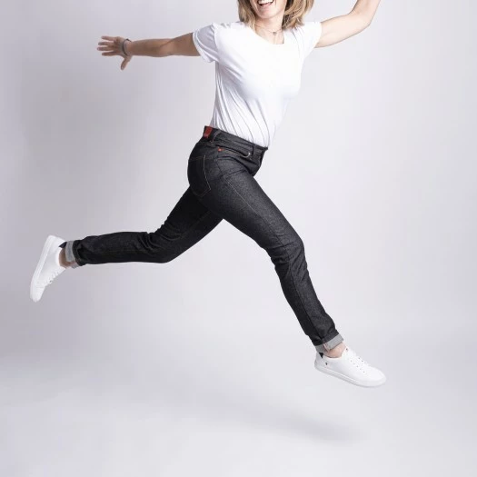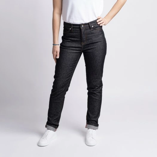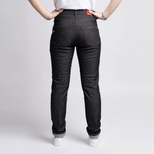 1083 JEANS SLIM 254 Taille Haute Coton Bio Superdenim Flex Noir Brut Femme