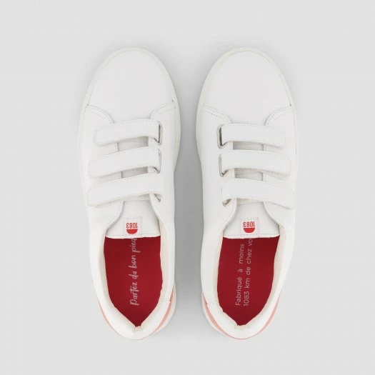 1083 SNEAKERS BASSES 913 Cuir Blanc/corail Unisexe