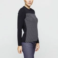 1083 PULL 671 SAINT JAMES Laine Merinos Bleu Marine/blanc Femme